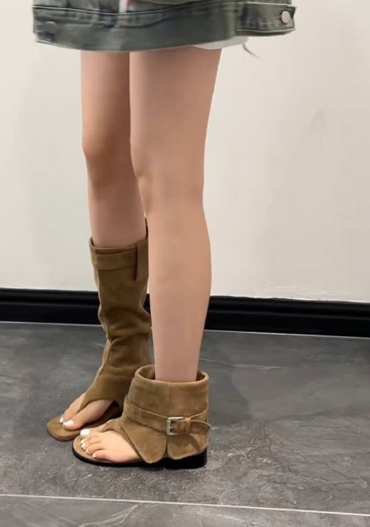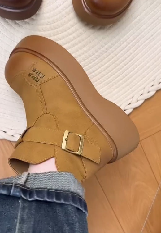 Semi-hollow metal buckle with zipper and high heel leisure boots