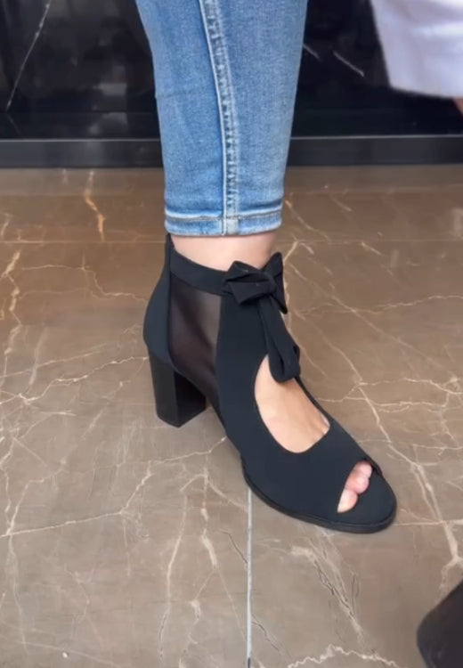 Women bowknot elegant block heel ankle boot