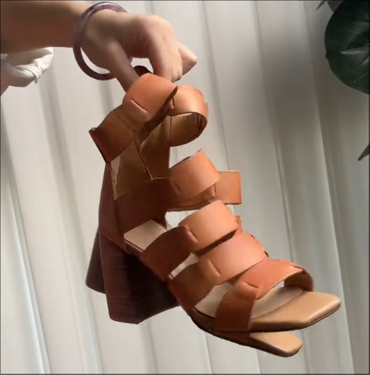 Retro leather high-heeled square toe sandals
