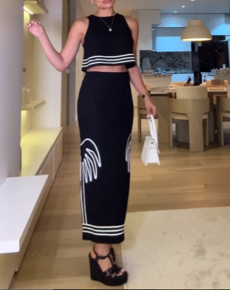 Summer Contrast Color Knitted Hollow Out Sleeveless Tank Dress