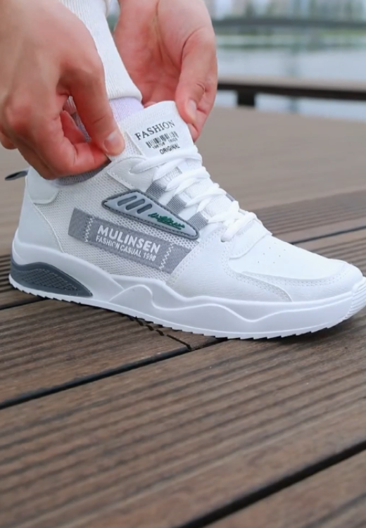 Men's casual sports shoes with gray striped letters