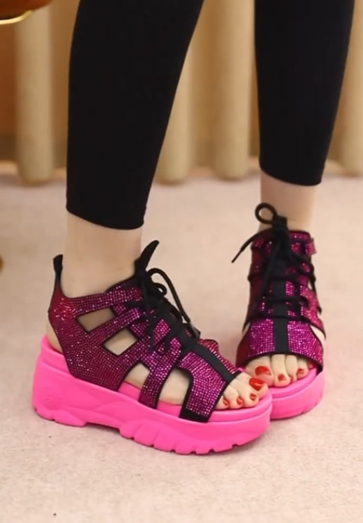 Bright color Flash diamond striped Roman sandals