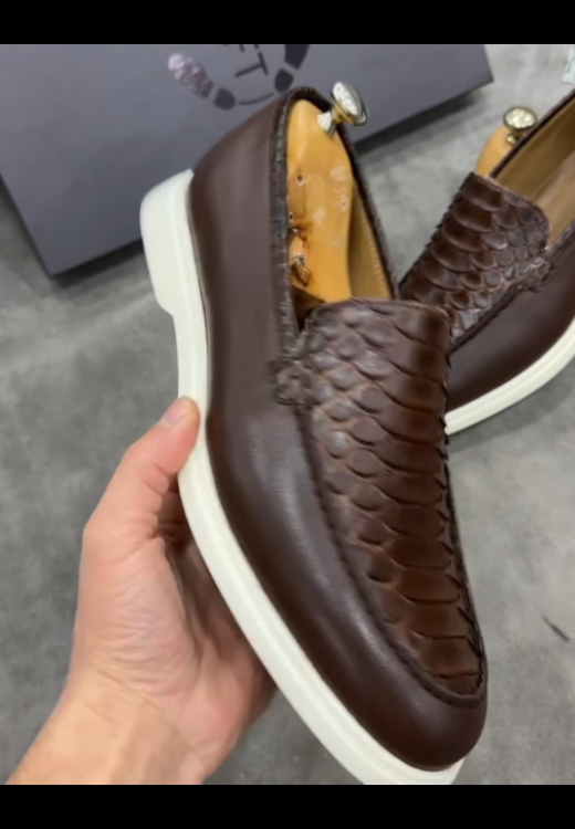 Crocodile solid color stitching casual leather shoes