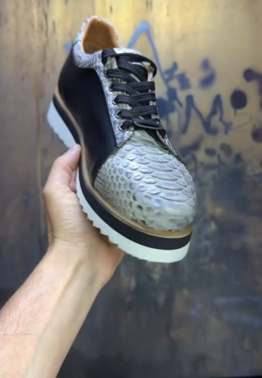 Gray scales splicing black casual shoes